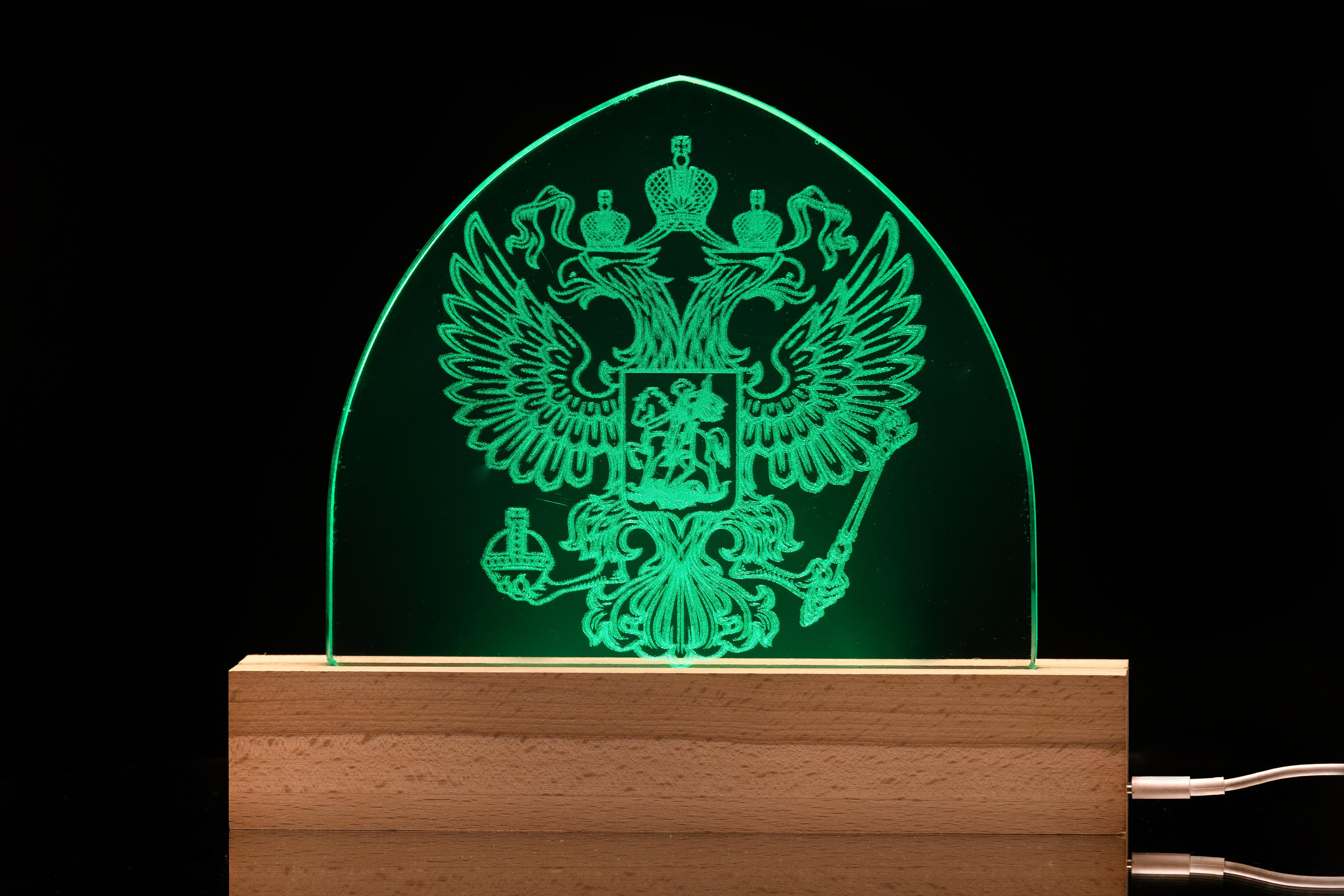 Настольный светильник подарок директору - герб России Подарите свет, эмоции и память! Мы превращаем стеклянный светильник в уникальный сувенир с гравировкой. Идеальный подарок для друга, парня, мужчине, папе, брату, сыну, подруги, сестры, дочери, мамы, жены или коллеги. Подходит для любого события: день рождения, юбилей, свадьба, новоселье, 8 марта, 14 февраля, 23 февраля, Новый год, в день России, на 9 мая, на День Победы или просто без повода. Ночник с 10 вариантам цветов и 3 режимами автоматической смены цветов создаёт волшебную атмосферу. Позволяет подобрать идеальный свет для любой комнаты. Питание — USB TYPE-C кабель и блок питания в комплекте. Подставка изготовлена из натурального бука, что обеспечивает устойчивость и стильное оформление. Ночник выполнен из настоящего стекла 12 мм — триплекс с рисунком внутри, который не мутнеет, не искажается. Управление светильником осуществляется через сенсорную кнопку, а питание от USB (включая зарядку от телефона). Каждый светильник упакован в подарочную коробку и готов стать запоминающимся сюрпризом. Лазерная гравировка остаётся яркой и чёткой, а стекло — безопасное и долговечное. Дарите свет и незабываемые эмоции, которые остаются в памяти. Размеры и состав светильника: • Размеры подставки - высота 4,5 см, длина 25 см, ширина 5 см • Размеры стекла - 19х19 см • Управление подсветкой касанием (скрытая бесконтактная кнопка). • Размеры коробки 32х32х6 см • Состав упаковки - подставка, стекло с рисунком, блок питания с проводом usb type-c.