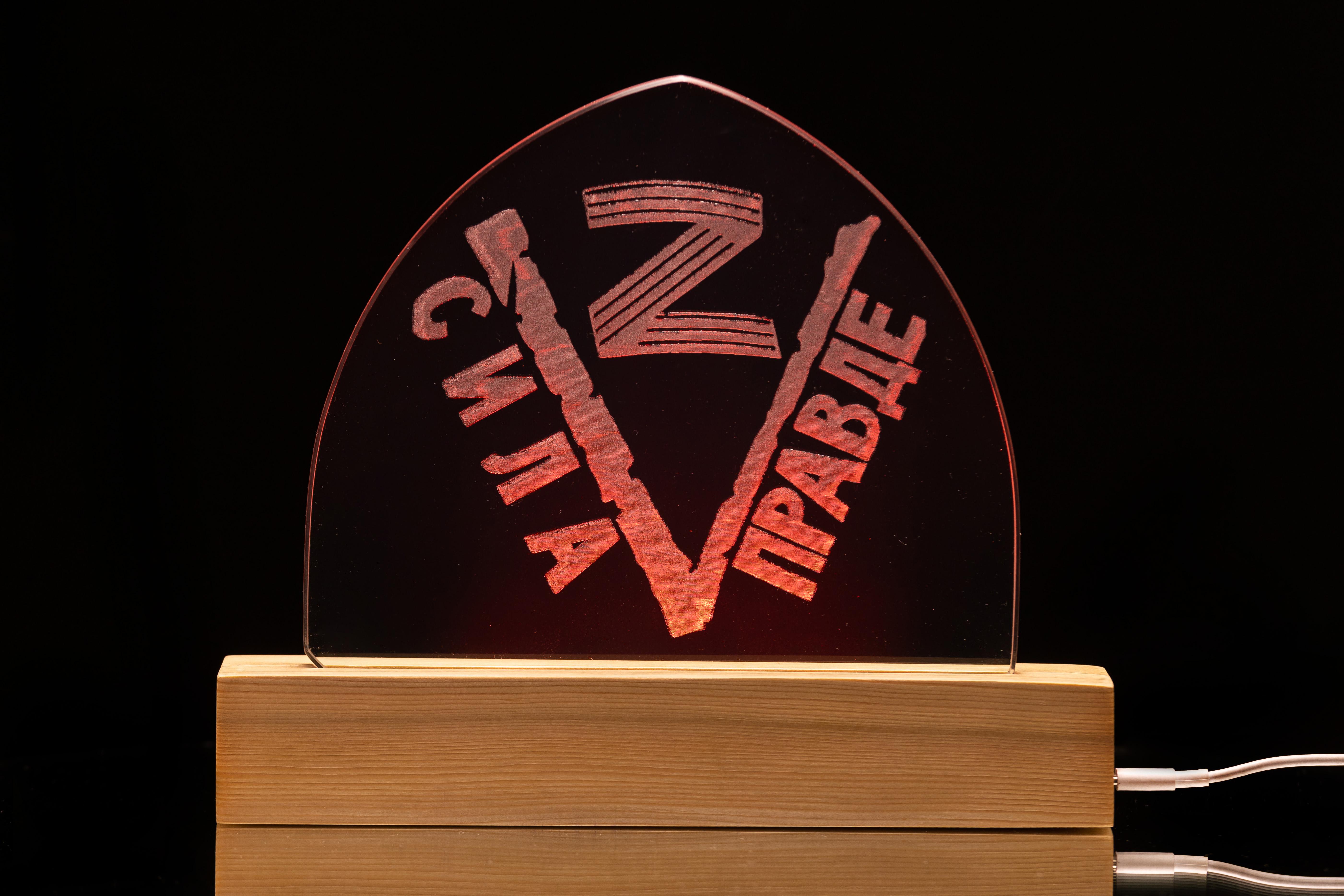 Настольный подарочный светильник Подарите свет, эмоции и память! Мы превращаем стеклянный светильник в уникальный сувенир с гравировкой. Идеальный подарок для друга, парня, мужчине, брату, сыну или коллеги. Подходит для любого события: день рождения, юбилей, свадьба, новоселье, 14 февраля, 23 февраля, Новый год, день ВДВ, день Победы, 9 мая, день танкиста или просто без повода. Ночник с 10 вариантам цветов и 3 режимами автоматической смены цветов создаёт волшебную атмосферу. Позволяет подобрать идеальный свет для любой комнаты. Питание — USB TYPE-C кабель и блок питания в комплекте. Подставка изготовлена из натурального дерева, что обеспечивает устойчивость и стильное оформление. Ночник выполнен из настоящего стекла 12 мм — триплекс с рисунком внутри, который не мутнеет, не искажается и не требует протирания. Управление светильником осуществляется через сенсорную кнопку, а питание от USB (включая зарядку от телефона). Каждый светильник упакован в коробку с мягким ложементом и готов стать запоминающимся сюрпризом. Лазерная гравировка остаётся яркой и чёткой, а стекло — безопасное и долговечное. Дарите свет и незабываемые эмоции, которые остаются в памяти. Размеры и состав светильника: • Размеры подставки - высота 4,5 см, длина 25 см, ширина 5 см • Размеры стекла - 19х19 см • Управление подсветкой касанием (скрытая бесконтактная кнопка). • Размеры коробки 32х32х6 см • Состав упаковки - подставка, стекло с рисунком, блок питания с проводом usb type-c.